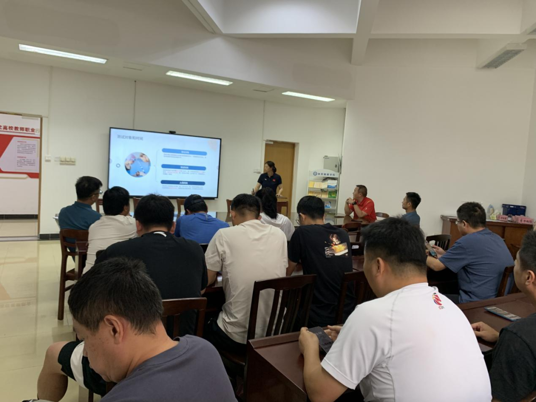 随后,王媛主任围绕公共体育课程游泳教学内容改革作专题分享,重点从课程思政有机融入、游泳测试对象与时间安排、公共游泳考试方案优化、蛙泳教学流程规范、安全救生技能强化等核心模块进行系统讲解。针对大家关注的公共游泳考试方法,王主任结合教学实际,对考试标准、组织流程、评分细则进行优化解读,确保考试更加科学、公平、高效;在蛙泳技术教学环节,重点对蛙泳腿部技术动作要领、易犯错误、纠正方法进行示范讲解与经验分享,为全体教师规范开展游泳技术教学提供了清晰指引和实用方法。