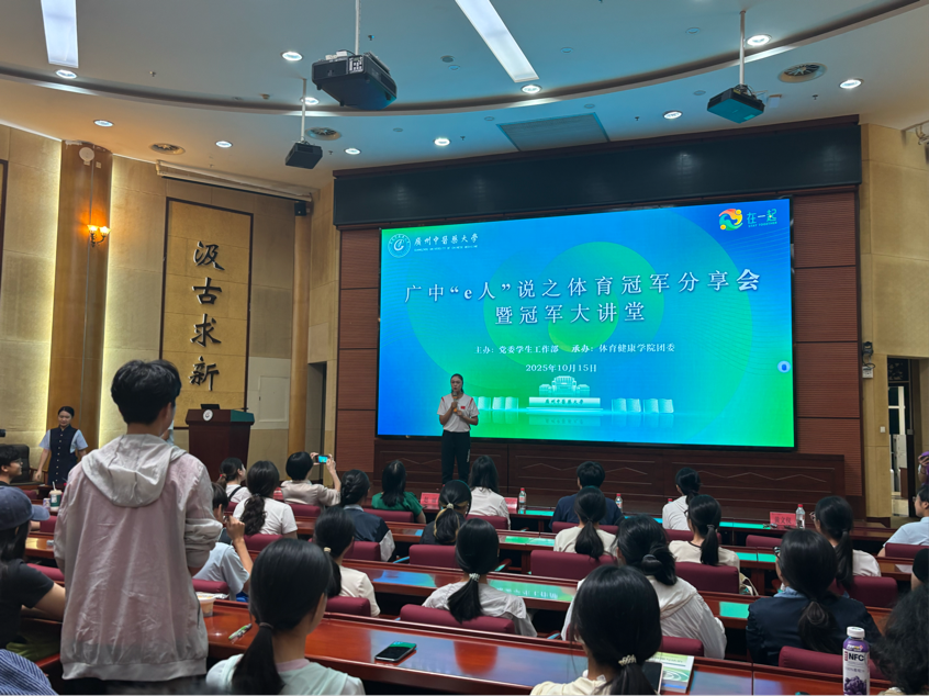 10月15日,由广州中医药大学党委学生工作部主办、体育健康学院团委承办的广中“e人”说之体育冠军分享会暨“冠军大讲堂”在大学城校区办公楼201学术报告厅顺利举行。赛艇世界冠军黄文仪老师以“从奥运赛艇到人生航道”为题主讲,分享成长故事,传递体育精神,助力校园体育文化建设和十五运会宣传。学生工作部副部长赵丽、体育健康学院党委副书记桂楠及学生工作部、体育健康学院教师代表与240余名学生共同参与。