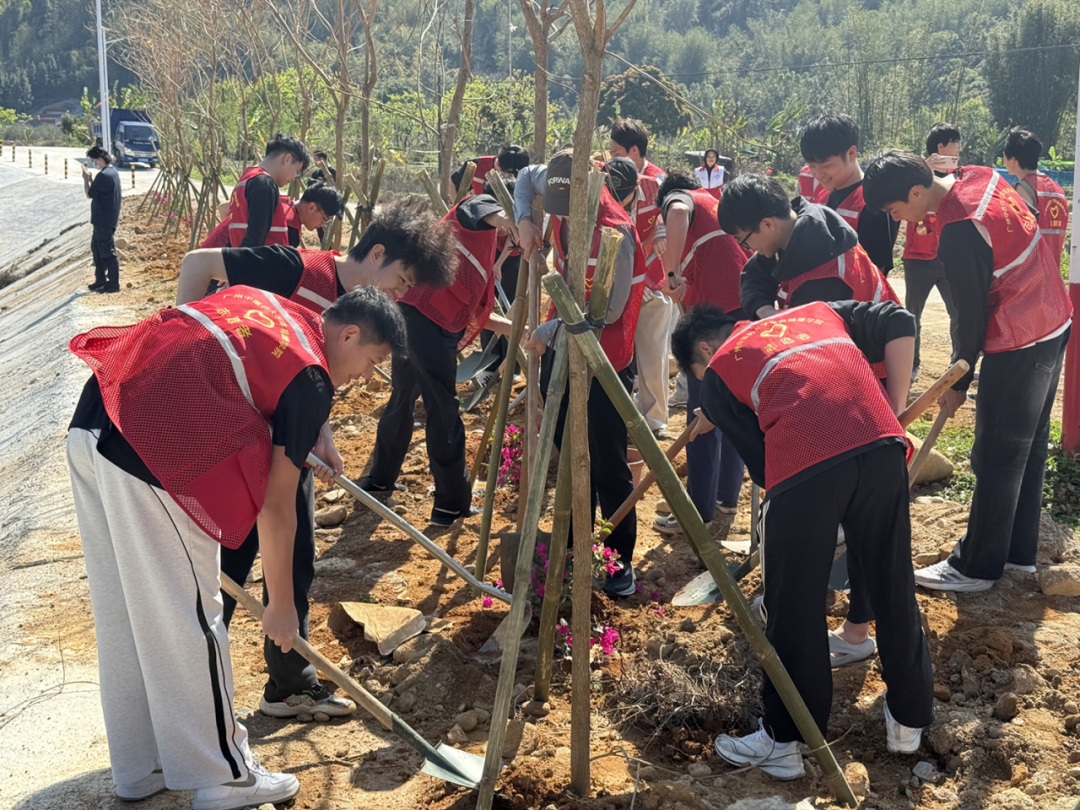 在校团委和院团委的组织下,体育健康学院宁佃帅老师带领22名志愿者奔赴佛冈县,与当地团县委、水头镇西田村联合开展“绿美兴村”植绿护绿志愿服务活动。这支由运动健儿组成的“绿色工匠”队伍,在训练场外展现了别样的风采。他们分工协作,累计种植三角梅75棵、铁冬青30棵,以实际行动为乡村家园增添新绿,守护生态底色,生动诠释了“绿水青山就是金山银山”的理念。