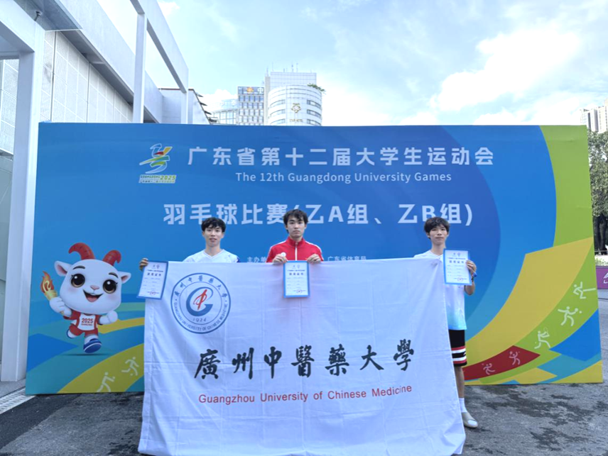 在广东省第十二届大学生运动会羽毛球赛场上,广州中医药大学羽毛球队在领队陈坚老师、教练员李嘉鸿老师的带领下,以昂扬的斗志和扎实的技术投身赛事。运动健儿们奋力拼搏、默契配合,展现出较高的竞技水平与永不言弃的精神,在多个项目中取得亮眼成绩。