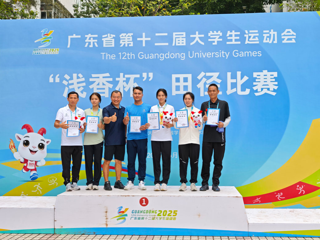 5月21日至27日,广东省第十二届大学生运动会田径比赛在暨南大学举行。全省139所高校的2071名运动员参赛。我校派出甲组(本科院校普通学生组)、乙A组(体育类专业学生组)共29名队员参赛,李兆伟院长、卞伯高副院长担任领队,蔡志强、荆纯祥、陈道睿、舒婷、黄文仪五位老师带队。