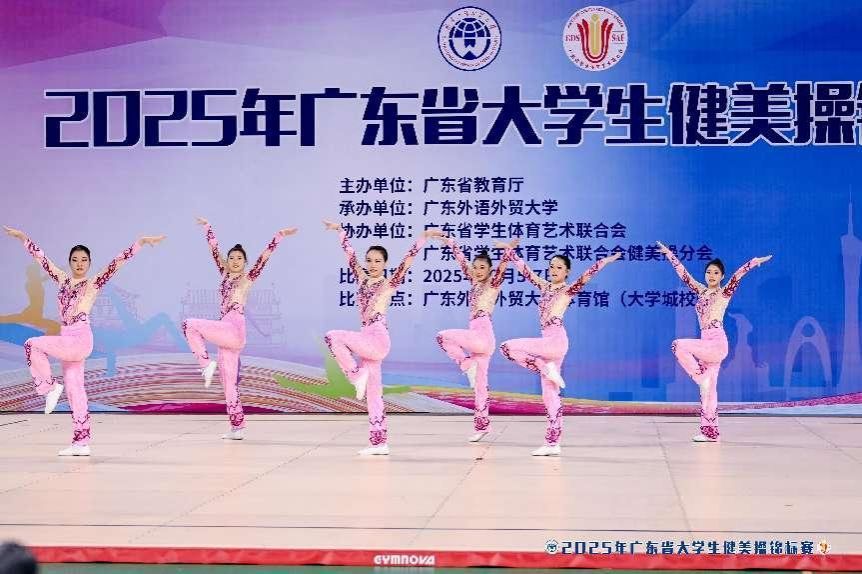 12月5日至7日,广东省大学生健美操锦标赛在广东外语外贸大学圆满落幕。我校健美操队在领队体育健康学院李兆伟院长的带领,以及庞贤妹、郭歌两位教练的专业指导下,凭借扎实的功底与出色的表现力,在赛场上屡创佳绩,为校争光。