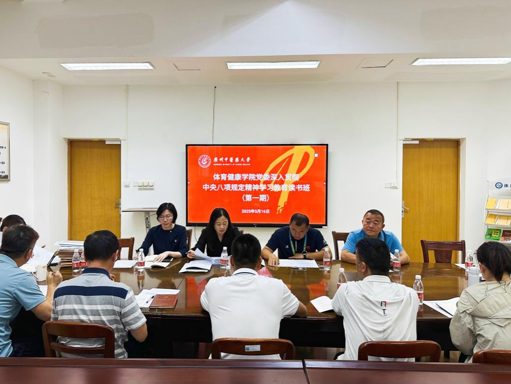 5月16日中午,体育健康学院党委在医科楼B117会议室举办深入贯彻中央八项规定精神学习教育第一期读书班。读书班由学院党委书记袁珊主持,学院班子成员、党委委员、党支部书记参加学习。