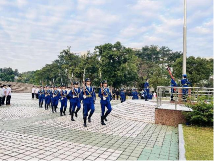 清晨,升旗仪式正式拉开序幕。伴随着激昂的《分列式进行曲》,国旗护卫队迈着铿锵有力的步伐,昂首挺胸护送国旗稳步入场,每一步都彰显着庄严与坚定。