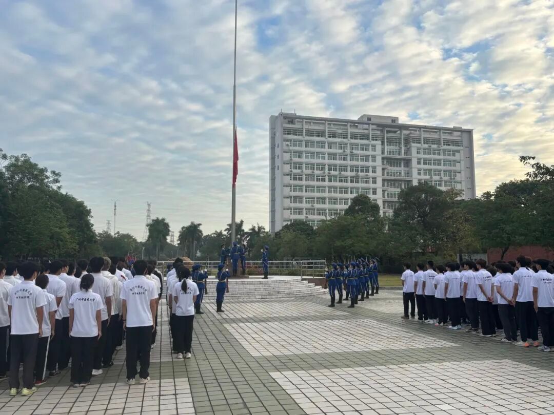 当鲜艳的五星红旗冉冉升起,全体师生凝望国旗行注目礼,《义勇军进行曲》的旋律久久回荡,将炽热的爱国情怀镌刻在每个人的心底。