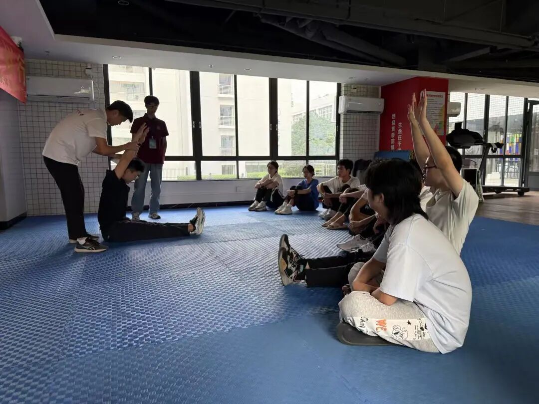 此次活动吸引了各学院同学踊跃参与,为同学们在体测备战中点亮了前行的“微光”。活动现场,体育健康学院学工办副主任黄友强老师,“一站式”学生社区兼职辅导员、2022级学生党员张玉锋,以及2023级体育教育专业的梁智亮和吴忠政同学发挥专业优势,聚焦体测中的立定跳远、仰卧起坐、坐位体前屈和引体向上四个项目与同学们进行了一场深入浅出的体测交流分享会,旨在帮助同学们清晰了解各项目的完整技术动作及相关的日常训练方法,以促进同学们的身心健康发展,提高体测成绩。
