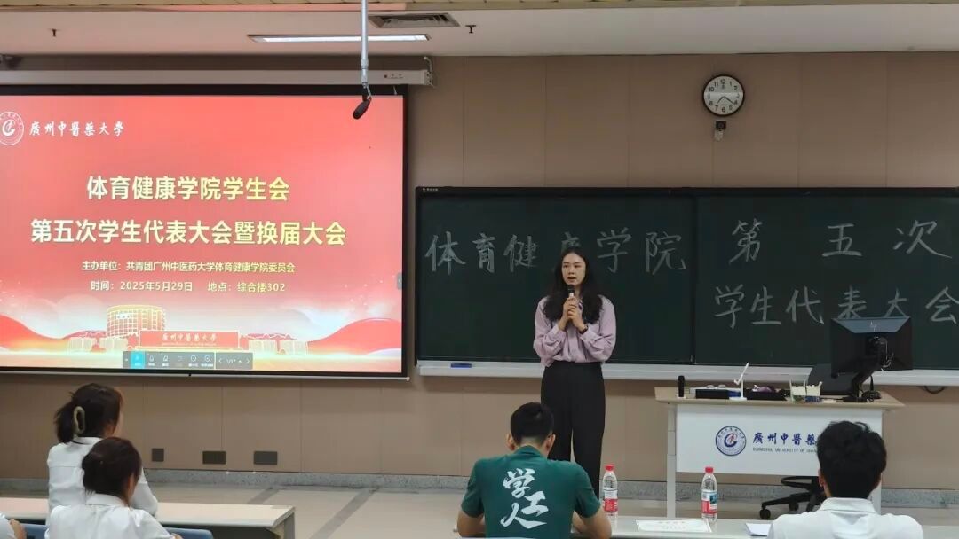 以青春之名,担时代之责。为进一步加强学生组织建设,凝聚青年力量,广州中医药大学体育健康学院第五次学生代表大会暨学生会换届大会于5月29日在综合楼302隆重举行。体育健康学院团委书记黄文仪老师、学工办副主任黄友强老师、辅导员朱穗琪老师出席会议,与学生会成员共同见证这一青春接力的重要时刻。