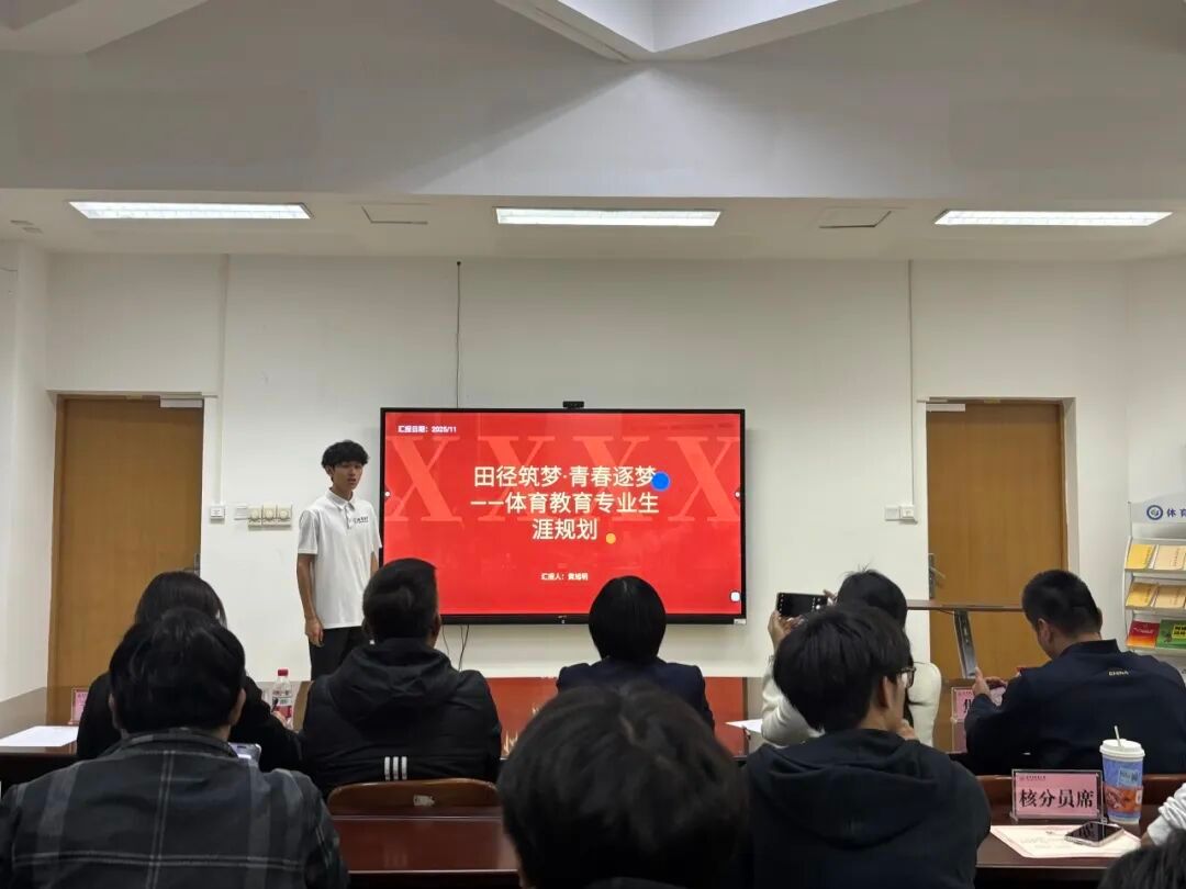 比赛现场气氛紧张而热烈。参赛选手依次登台,围绕自我认知、职业环境分析、目标确立、路径设计及行动计划等核心内容,通过生涯发展展示与现场答辩,呈现了兼具科学性与可行性的职业规划方案。选手们的规划既结合专业特色与社会需求,又融入体育强国战略,展现了体育教育专业学生的职业视野与责任担当。