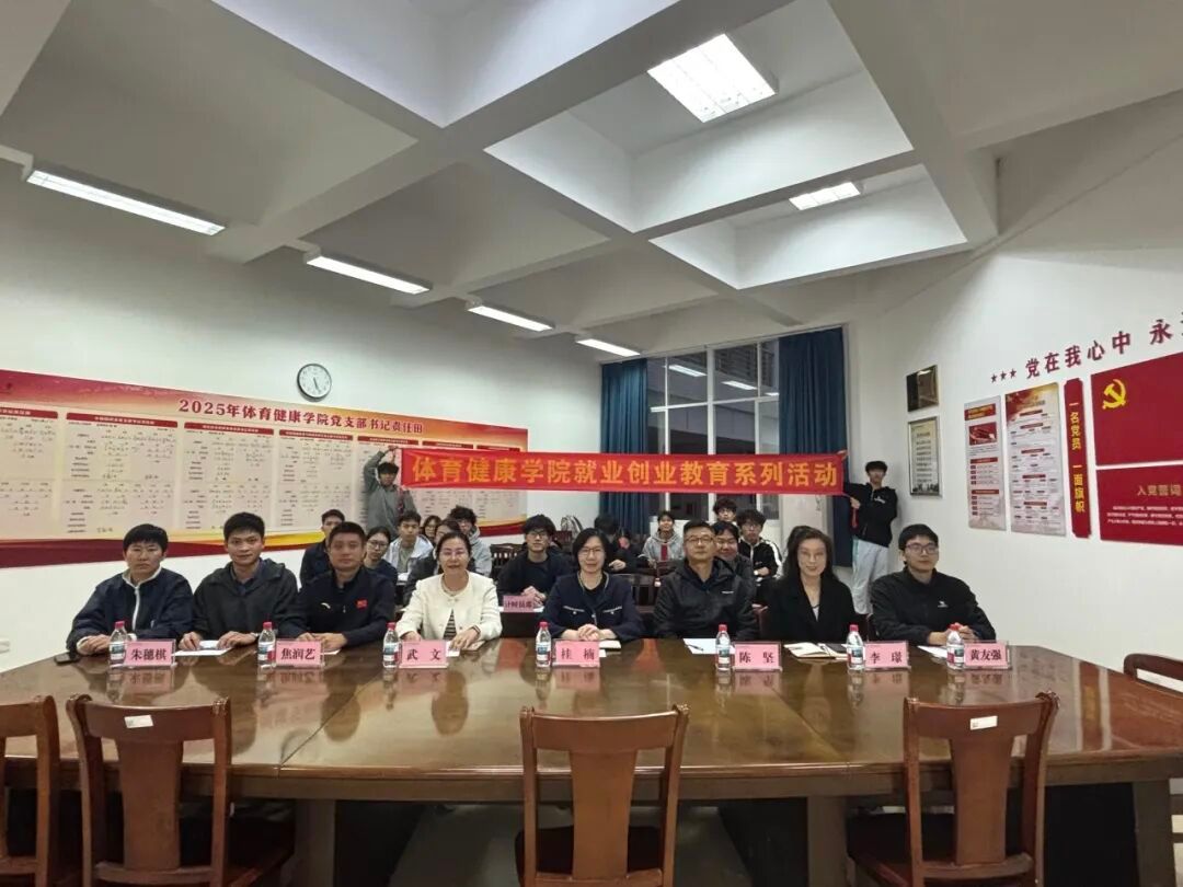11月18日下午,体育健康学院于学院会议室举办职业规划大赛,助力学生探索自我,认知职业,树立科学职业目标,提升综合竞争力。活动邀请学院党委副书记桂楠 、副处级辅导员陈坚、学生工作部就业创业指导科科长武文、公共卫生与管理学院学工办主任李璟、学院学工办副主任黄友强、2025级辅导员朱穗棋、2024级班主任李雯、学院专业教师焦润艺担任评委。